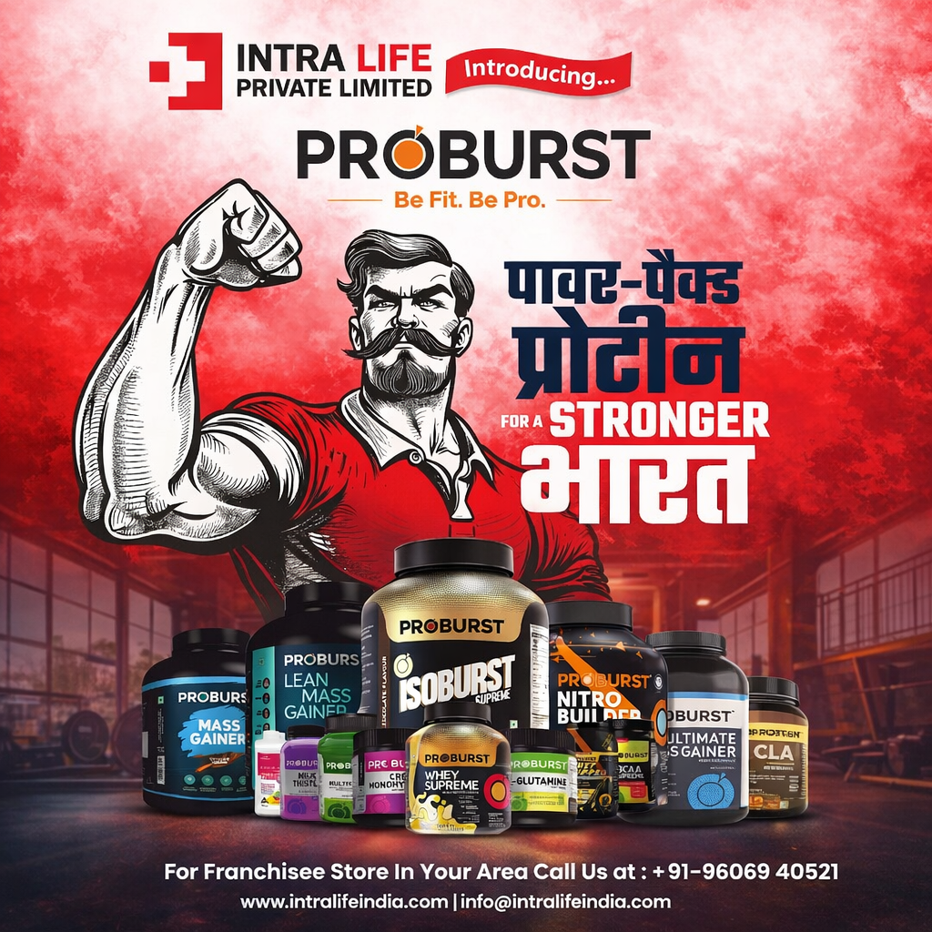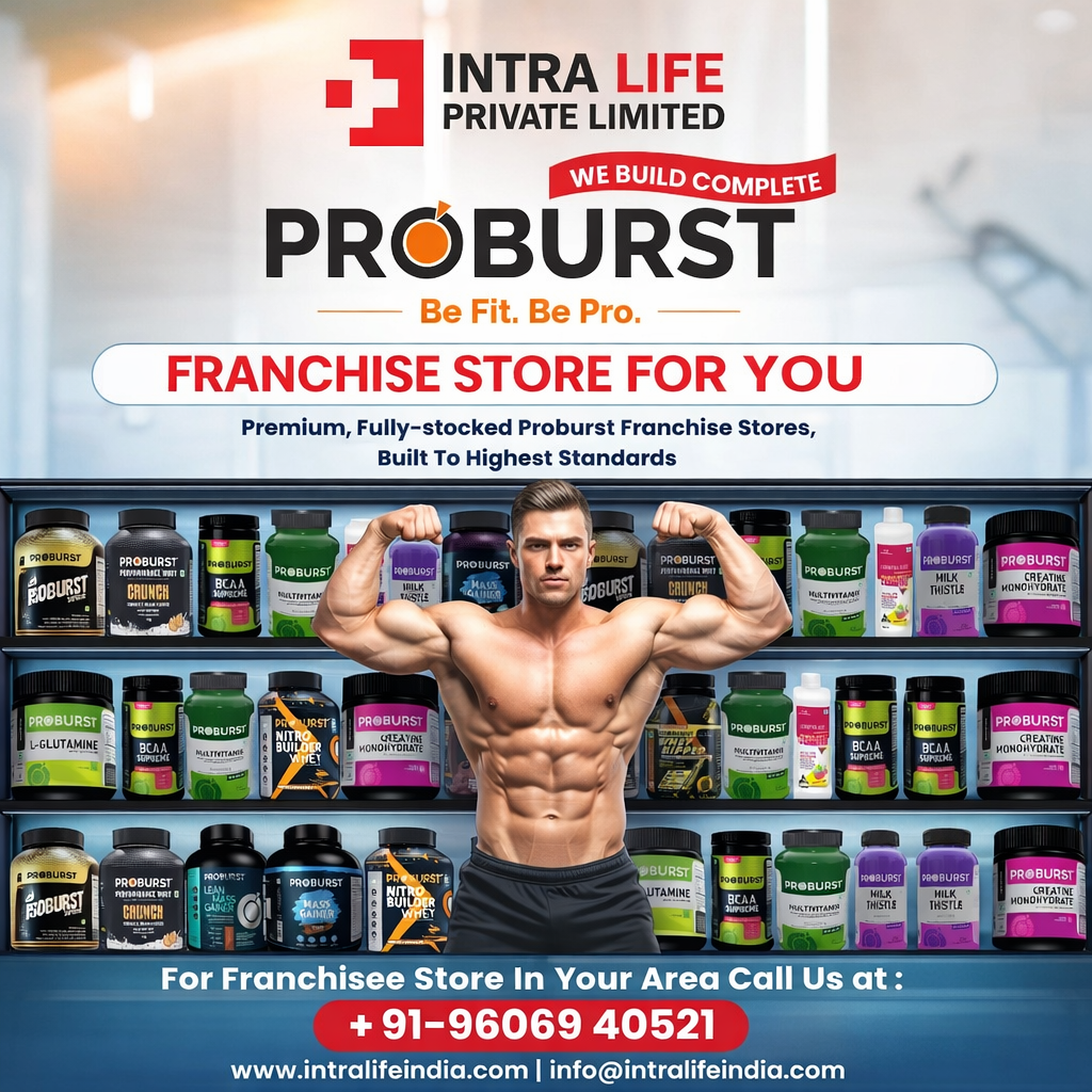 The fitness and sports nutrition market in India is growing rapidly, with millions of people focusing on health, strength, and active lifestyles. Proburst by Intra Life Private Limited brings you a unique opportunity to become part of this booming industry by launching your own Proburst Franchise Store.