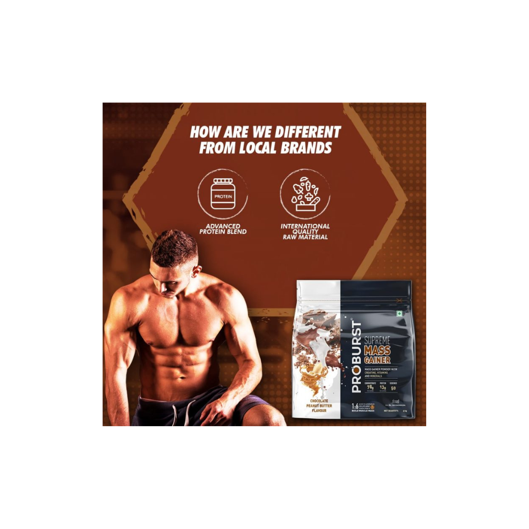 PROBURST Supreme mass gainer powder, Chocolate Peanut Butter flavour + Gym Vest Free