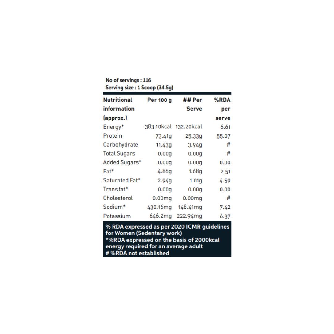 - Whey Protein isolate manufactured through Cross-flow Micro-filtration.