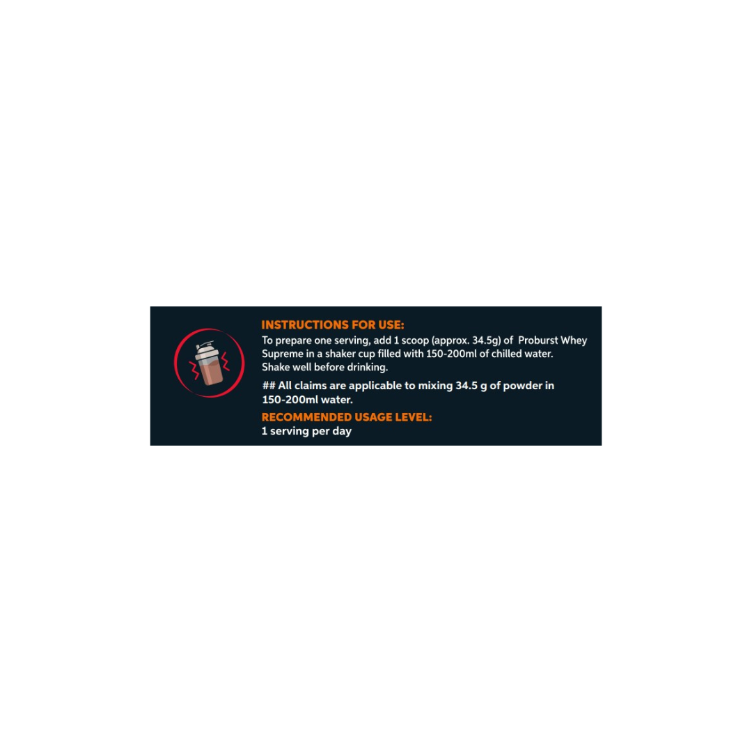 Each serving of Proburst whey supreme has 25 gm of high quality protein from Whey Protein Concentrate & Whey Protein Isolate.